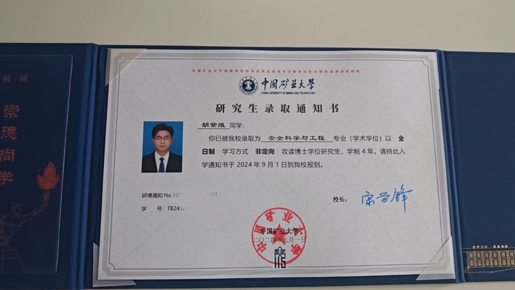 读研期间,他潜心学术研究,以第一作者身份发表SCI1区TOP论文一篇,以第二作者身份发表EI论文一篇。他的卓越表现和科研成果,为他赢得了中国矿业大学博士录取通知书。