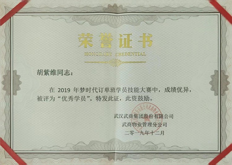 “有一次,领导找到我,夸我工作做得好,那一刻,我觉得所有的付出都值了。”胡紫维回忆起工作中的点滴,眼中闪烁着光芒。在此期间,他获得“梦时代订单班”优秀学员称号,还在武商集团首届“微课大赛”中荣获个人三等奖。