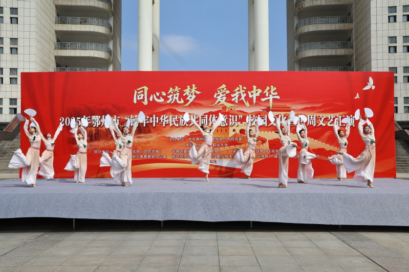 9月26日上午,由中共鄂州市委统战部(市民委)主办的“同心筑梦 爱我中华”2025年鄂州市“铸牢中华民族共同体意识”校园文化宣传周文艺汇演在鄂州职业大学举行。武汉职业技术大学作为重要参演单位,选派校团委大学生艺术团编排的民族舞《玉鸟》参演。节目以深厚的文化内涵和精湛的艺术表现,赢得现场观众的热烈反响与高度评价。