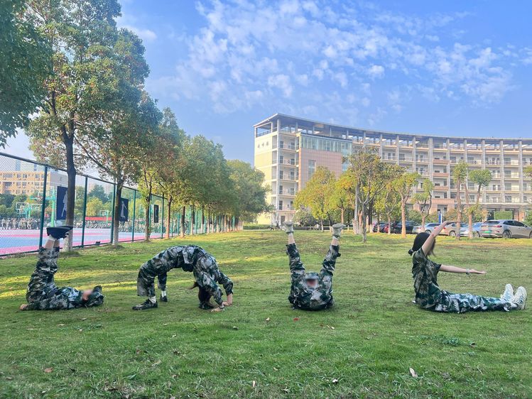 冬日暖阳洒满校园草地,几名新生解锁“创意玩法”,开启元气满满的“行体艺术模式”。大家或躺或立,或弯腰伸展,每个动作都透着蓬勃活力:有人大胆倒立,向蓝天宣告无畏;有人轻轻弯腰,似在守护并肩情谊;有人张开双臂,仿佛要将整个青春拥入怀中。背景里的教学楼静静矗立,篮球场轮廓隐约可见,默默见证这场军训里的浪漫告白。那个大大的“LOVE”,悄悄诉说着严谨训练之外,青春本该有的温暖与热烈。