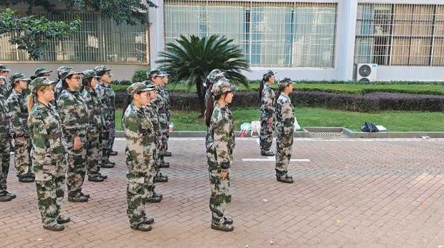 初冬的武汉,晨雾带着微凉散去,暖阳便迫不及待地洒向武汉职业技术大学各处军训场地。外语外贸学院的新生们身着迷彩服,在整齐的口号声中开启每日的军训时光。太阳下的站军姿、反复打磨的踢正步,看似枯燥的训练里,却藏着一群女生专属的温柔与热闹。这些细碎的瞬间,恰是她们军训成长册里最动人的部分。