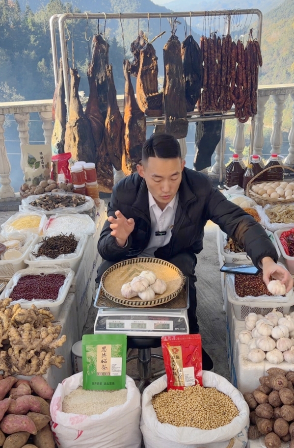搭建宣传平台后,帮扶工作转向实质性助农行动。10月18日,校村联合举办“推介梭布垭特色”直播带货活动,工作队与村民共同推介当地腊肉、茶叶、土豆等特色农产品,还与村两委一同打包发货,保障售后服务质量。截至目前,累计开展直播10余场,销售额超3万元,有效缓解了农产品滞销难题。