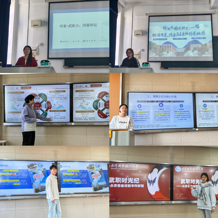 完成企业实战后,学生在四位专业指导老师带领下,进入为期四周的毕业设计攻坚阶段。本次毕业设计以“武职大:遇见・传承・未来”和“印象・武职大:我的青春坐标”为主题,立足学校2025年成为湖北省首个职业本科院校的重要历史节点,鼓励学生以个人视角挖掘校园独特魅力,传播这一历史性事件。