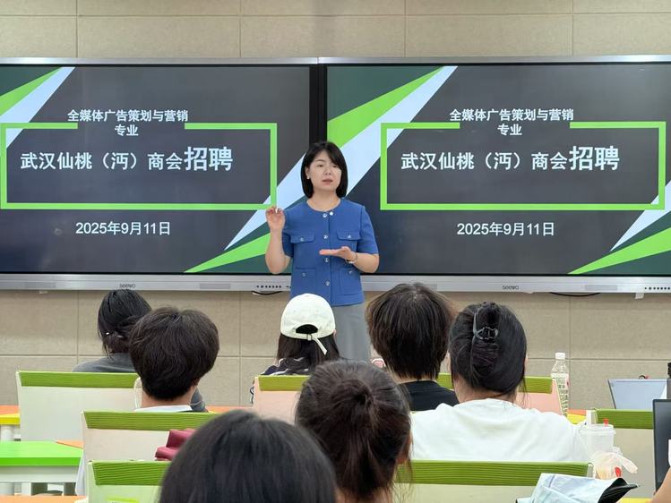 企业进学院环节,时尚与传媒学院组织专场就业宣讲,利郎(中国)时装有限公司、武汉优品壹创科技有限公司等企业开展高效直聘,对学生的团队协作与问题解决能力给予高度评价。
