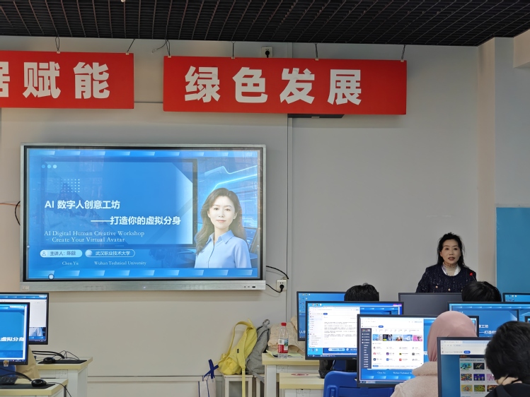 新闻网讯(通讯员杨小雨)11月20日下午,武汉职业技术大学凌峰楼B308教室“燃”起创意热潮!“AI数字人创意工坊:打造你的虚拟分身”留学生教学实践活动精彩上演。来自哈萨克斯坦、俄罗斯、吉尔吉斯斯坦等11个国家的28名留学生齐聚一堂,在主讲教师陈觎指导下玩转 AI工具、打造专属虚拟分身,在跨时空的互动中碰撞技术火花、感受中国诗韵,开启了一段融合人工智能技术与中国诗韵文化的奇妙实践之旅。