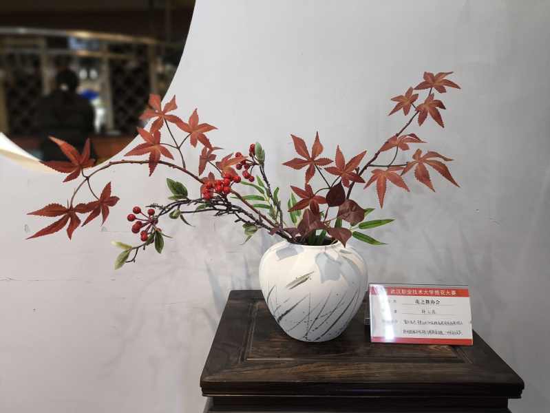 新闻网讯(通讯员雷晶 大学生记者张小清)11月23日, 武汉职业技术大学第四届花艺比赛圆满落幕。本次赛事初赛吸引全校8个二级学院83名选手报名,经筛选9人晋级决赛。本次比赛以“独绽芳华,艺塑未来”为主题,在往届基础上创新升级,增设现场插花展示与最佳人气观众投票环节,为全校师生呈现了一场兼具专业性与互动性的花艺盛宴。