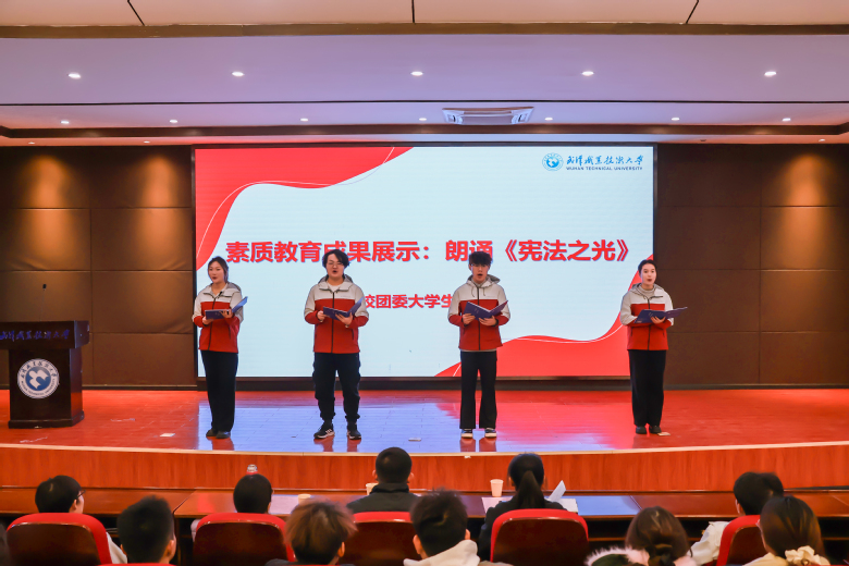 以宪为纲,与法同行。此次“宪法宣传周”系列活动,通过“学、诵、赛、讲、互动”等多元形式,让宪法从“文件”走进“生活”、从“条文”变为“信仰”。武汉职业技术大学将持续深化宪法宣传与教育,推动法治精神融入育人全过程,着力培养更多尊法学法守法用法的时代新人,为法治中国建设注入青春力量。