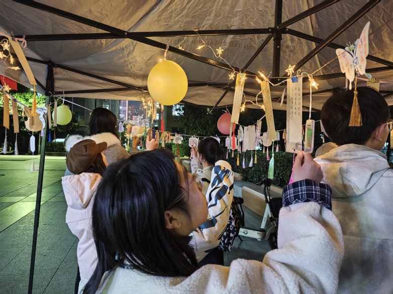 灯谜解“宪”,文化润心。12月3日,学校凌云广场与东三食堂前广场人头攒动,以灯谜为媒、传播宪法精神的互动活动燃情上演。“治国安邦总章程(打一法律名词)—— 宪法!”“人人平等无贵贱(打一宪法原则)—— 法律面前一律平等!”一条条兼具知识性与趣味性的谜语,让宪法知识变得通俗易懂。大学生社团发展中心的志愿者们化身“解谜向导”,在互动答疑中巧妙讲解宪法核心要义与基本常识。活动在灯谜的点点星光中渐近尾声,宪法知识已悄然化作思维的星火,点亮了学子们通往法治精神深处的路径。