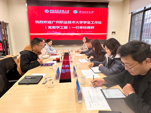 新闻网讯(通讯员袁昌宁)12月4日,广州职业技术大学学生工作处副处长谢艳霜一行5人来访,围绕心理健康教育、“一站式”学生社区建设及辅导员队伍建设等主题开展调研交流。武汉职业技术大学学生工作处副处长夏挺、心理健康教育中心主任吴量、二级学院学生工作办公室主任代表参加座谈。