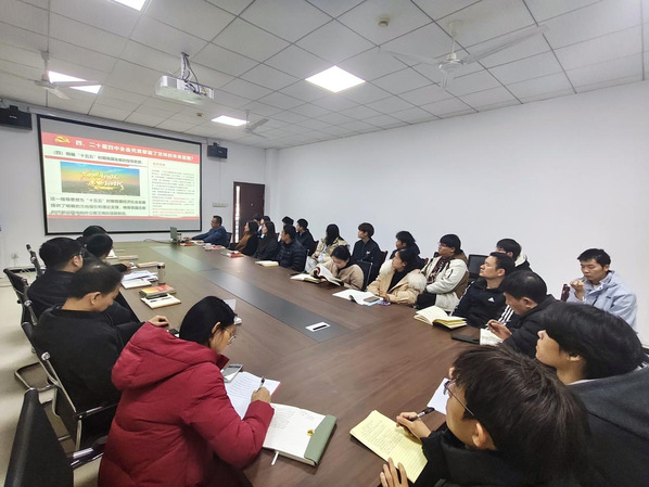与会师生专心听讲,踊跃交流学习感悟,纷纷表示要将全会精神转化为实干动力。刘畅博士表示,作为职业院校教师,要把全会精神贯穿教学科研全过程,坚守立德树人根本任务,将价值塑造、知识传授与能力培养融为一体,在机制专业课程中深化课程思政,引导学生树立科技报国志向。增材25301班秦文祥说:“作为智能制造专业新生,要在实训室里画好每一张零件图纸、拧牢每一颗设备螺丝、敲对每一行编程代码,不当空想家、争做实干派,早日成长为扛起智能制造发展大旗的有为青年。”