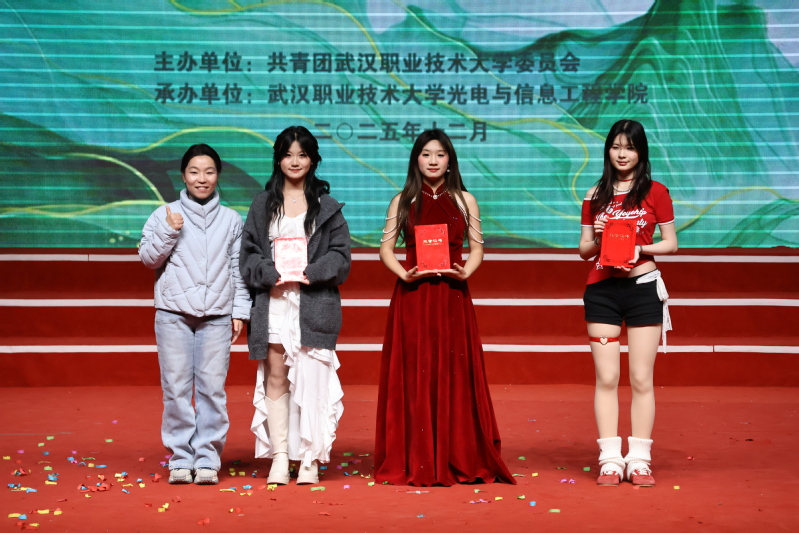 新闻网讯(通讯员郜浩浩 摄影张马涛)12月4日晚,武汉职业技术大学“青年才艺大比拼”总决赛在光谷校区德礼堂精彩上演。活动由校团委主办、光电与信息工程学院分团委承办。17组来自各二级学院的优秀节目同台比拼,千余名师生齐聚现场,共赴这场青春洋溢、艺术交融的校园才艺展演。