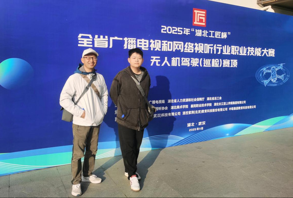 新闻网讯(通讯员 余若溪) 近日,2025年“湖北工匠杯”技能大赛——全省广播电视和网络视听行业职业技能竞赛圆满落幕。由艺术设计学院数字媒体艺术设计教师李振川、数字媒体23305班学生艾宇烨组成的武汉职业技术大学代表队,在无人机驾驶(巡检)赛项中表现优异,双双荣获三等奖。