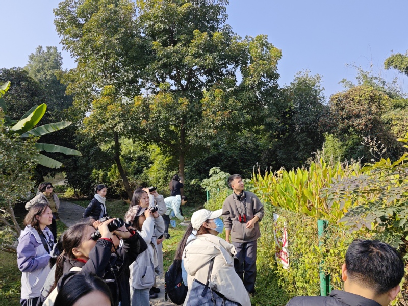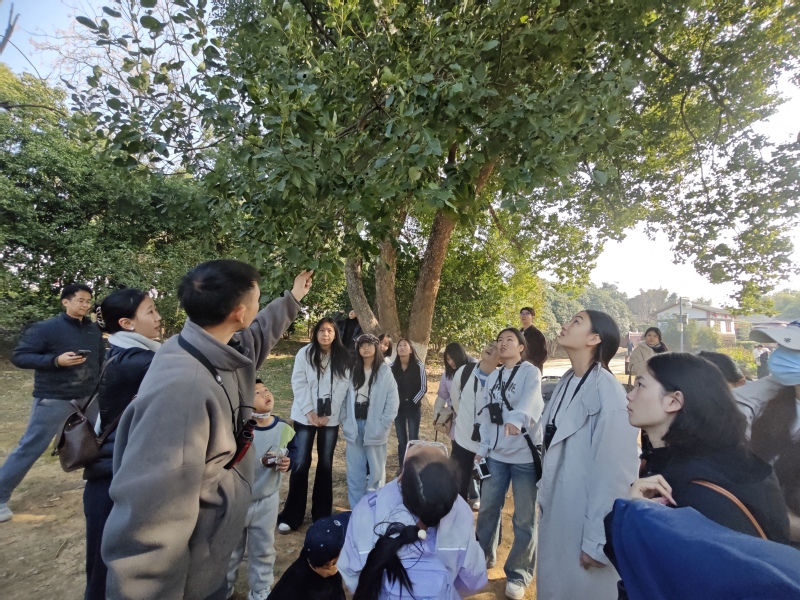 活动伊始,自然导师先手把手教大家调试、使用望远镜,引导志愿者们观察树梢间栖息的鸟类。冬日清晨虽带着凉意,当一只只活泼的鸟儿通过镜头清晰映入眼帘时,志愿者们的观察热情瞬间被点燃,正式拉开本次自然导赏的序幕。