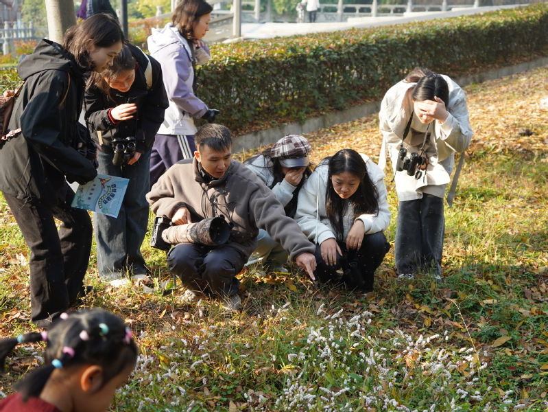 两小时的徒步观察中,志愿者们的“发现清单”不断拉长:忙着搬运食物的针毛收获蚁、捕食蚜虫的大赤螨、躲在树皮下的象甲与伪蝎、“放牧”蚜虫的弓背蚁,还有在蚜虫群中“吃自助餐”的食蚜蝇幼虫……“以前逛公园都是匆匆走过,没想到放慢20倍脚步,能收获一个又一个惊喜!”制药25304班秦玉芳感慨,这场活动让她重新认识了身边的自然,也对生态保护的意义有了更深理解。