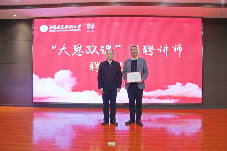 会上,鄢烈洲为秦秋平颁发学校“大思政课”特聘讲师聘书。这一聘任为学校思政教育注入了来自基层一线的实干力量,同时因一段特殊的渊源增添了温情——秦秋平的儿子是武职旅游与航空服务学院2018届毕业生,如今已成长为一名公职人员,这份跨越家校的联结,让现场师生倍感亲切。