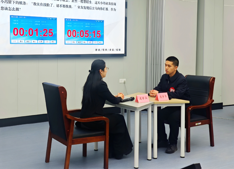 演练现场,20名辅导员直面理想信念引导、学业发展支持、心理危机干预、人际关系调适等真实工作场景和“考题”,灵活施策,在规定时间内展现出扎实的职业素养与良好的精神风貌,每一场互动都紧扣育人核心,每一次沟通都彰显责任担当。