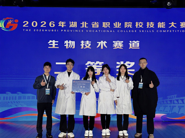 新闻网讯(通讯员刁洋洲)近日,2026年湖北省职业院校技能大赛生物技术赛道比赛圆满落幕。由生物工程学院检验25402班贺庆、检验25404班徐芷萱、检验25404班冯子逸、食品25301班韩佳敏组成的武汉职业技术大学代表队二队,荣获二等奖。