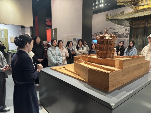 1月14日,研学团走进中国建筑科技馆。在讲解员的引导下,学子们依次探访荆楚、现代、古代、未来四大展厅,从凝结先民智慧的荆楚建筑,到展现时代力量的现代工程,从传承千年的古法技艺,到勾勒未来的创新构想,一段跨越时空的建筑史诗生动呈现。
