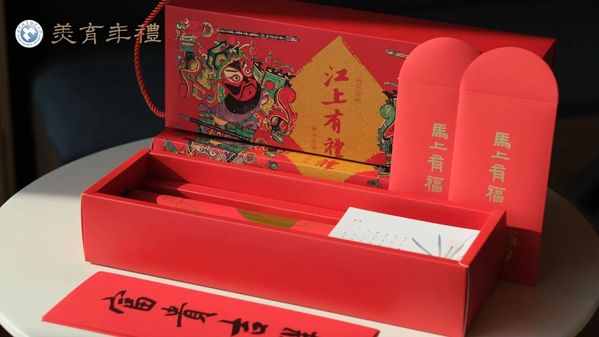 整套年礼以红色为主调,象征喜庆吉祥;门神、暗八仙、星宿等符号承载着驱邪纳福、天人合一的传统文化观念;书法集字则体现了对历代名家书风的传承与致敬。体育美育工作部党总支书记、主任闫升表示:“希望通过这些可触摸、可互动的文创产品,让年轻人在动手体验中感受传统艺术的魅力。”康峰坦言:“这份年礼既是节日装饰,更是文化基因的载体,每一笔一画都蕴含着先人的智慧与对美好生活的向往。”