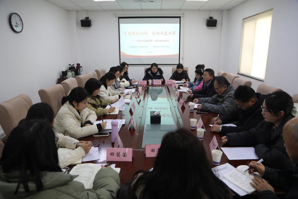 新闻网讯(通讯员张珍)1月27日,武汉职业技术大学马克思主义学院与鄂州葛店经开区城乡融合发展局联合召开“大中小思政课一体化建设”研讨交流活动。鄂州葛店经开区城乡融合发展局党委委员、教育组组长张德伦,葛店镇教育研究与发展工作组主任姜明君、基教负责人尹思锐,葛店经开区葛店中学等四所中小学教师代表,武汉职业技术大学马克思主义学院院长张晓莲以及教师代表参会。与会人员围绕“大中小学思政课一体化”建设中的课程衔接、师资共育、资源共享、实践协同等核心议题展开研讨,凝聚育人共识,共商推进举措。