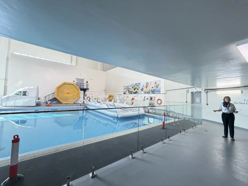 仿真全动飞行模拟舱、专业的水上撤离训练池以及先进的应急设备展示架