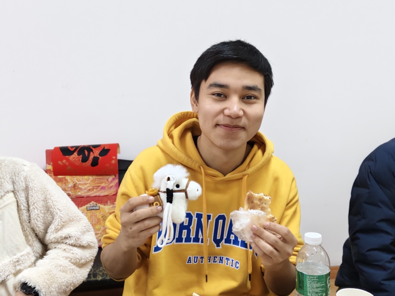 来自乌兹别克斯坦的凯文尝着热气腾腾的饺子,开心地分享:“我最喜欢的中国美食就是饺子,今天了解到它象征着团圆与吉祥,吃起来更有意义了。”来自哈萨克斯坦的文奕雄在尝到新疆特色馕饼时,当即想起了家乡的传统面食,兴奋地和大家分享着两地面食的相似之处,还不时拿起手机记录下聚餐的温馨场景,让这份跨文化的味觉共鸣与节日喜悦,随镜头定格。