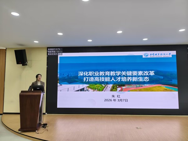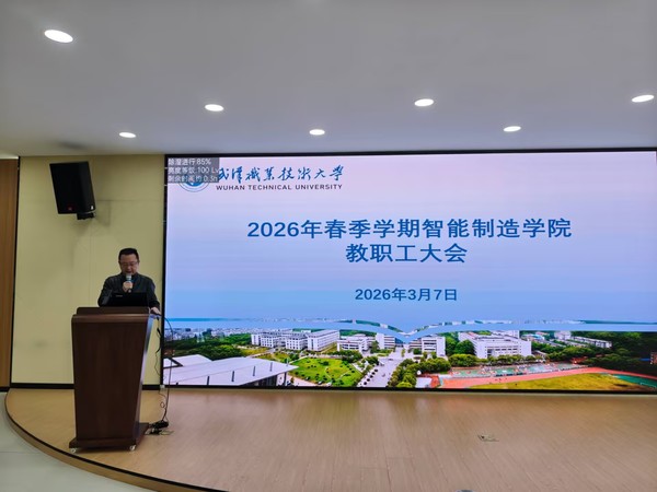 新闻网讯(通讯员 袁满)春启新程,奋楫扬帆。3月7日上午,智能制造学院2026年春季学期教职工大会在学院四楼报告厅举行。会议深入学习职业教育改革新政策,全面部署新学期重点工作,进一步统一思想、凝聚共识,为全年各项工作开好局、起好步奠定坚实基础。智能制造学院党委书记江辉主持会议。