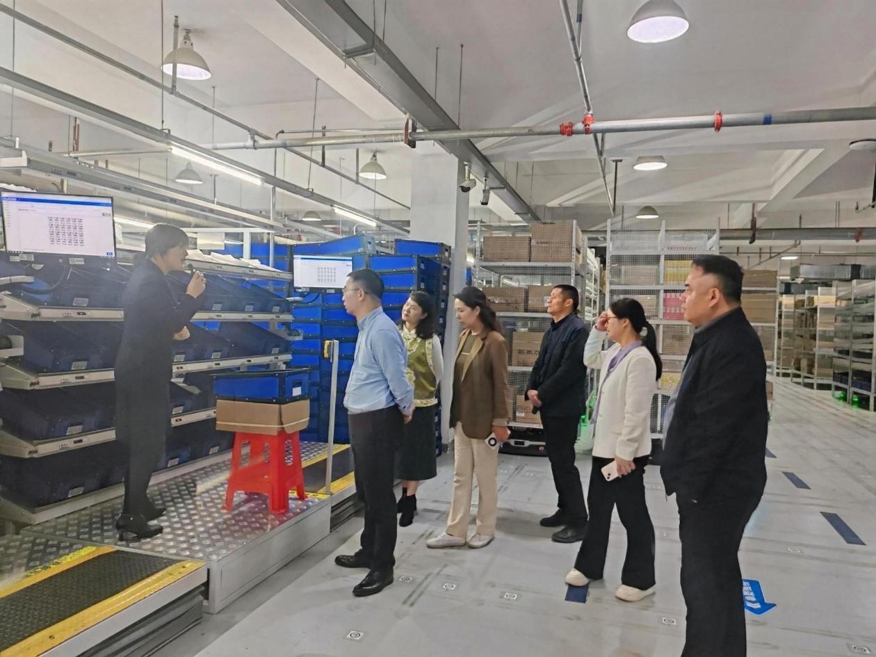 座谈会后,李仁平一行实地参观了九州通武汉东西湖现代医药物流中心。该中心是国内领先的集智能化、自动化、数字化于一体的现代物流枢纽,其自动化立体库的密集存储、AGV“货到人”的智能调度以及高效的分拣系统给参访团留下了深刻印象。