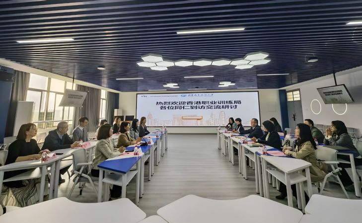 新闻网讯(通讯员 高洁)4月17日上午,香港职业训练局(VTC)语文学科系主任香惠芳率代表团一行10人来访,与外语外贸学院党委书记桂毅、副院长黄晶晶,以及对外合作与交流处(港澳台办公室)、继续教育与培训处、外语外贸学院、时尚与传媒学院相关教师代表开展专题交流。双方聚焦职业英语课程建设、中文国际教育、AI赋能语言教学及产教融合等领域深入研讨,达成多项合作共识,为深化校际协同、推动职业语言教育创新发展搭建优质交流平台。