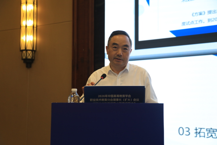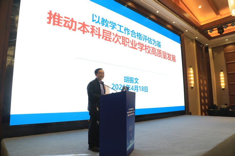 中国高等教育学会职业技术教育分会专家委员会委员胡振文作《以教学工作合格评估为基,推动本科层次职业学校高质量发展》报告,解读职业本科教学合格评估指标体系,突出职业性与应用型特色,为职业本科教育提供精准指引。